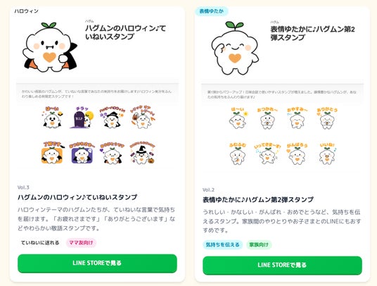 ハグムンはすでにLINEスタンプをVol.5まで展開しています(LINE STORE)。ご当地ハグムンのLINEスタンプ化も予定。地域特化スタンプを地元住民・観光客向けに展開する取り組みも検討可能です。