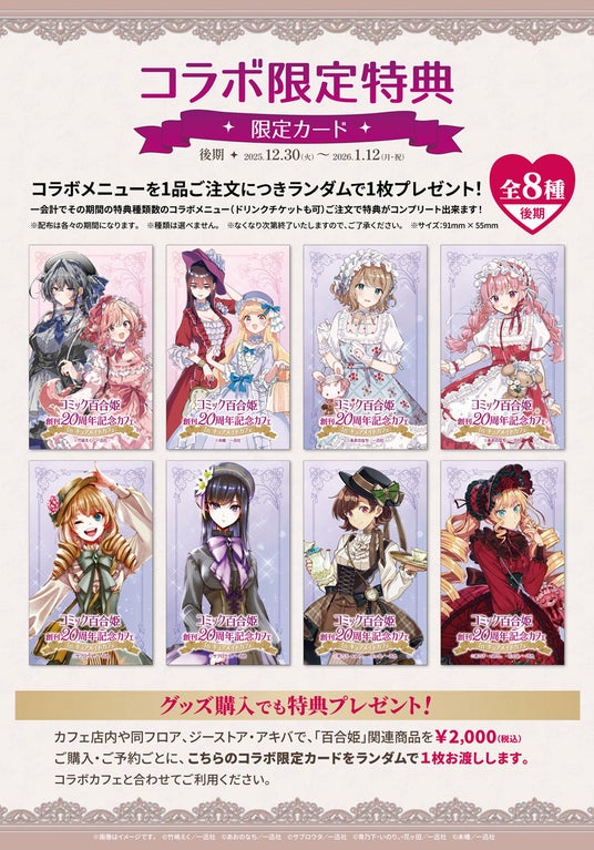 キュアメイドカフェ店内や同フロア、ジーストア・アキバにて「百合姫」関連商品を2,000円(税込)